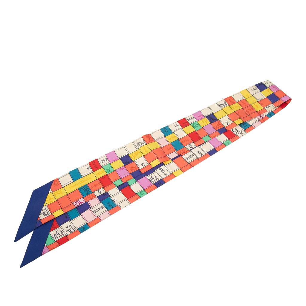 Hermès Bolduc Au Carre Silk Twilly Scarf Blue Silk