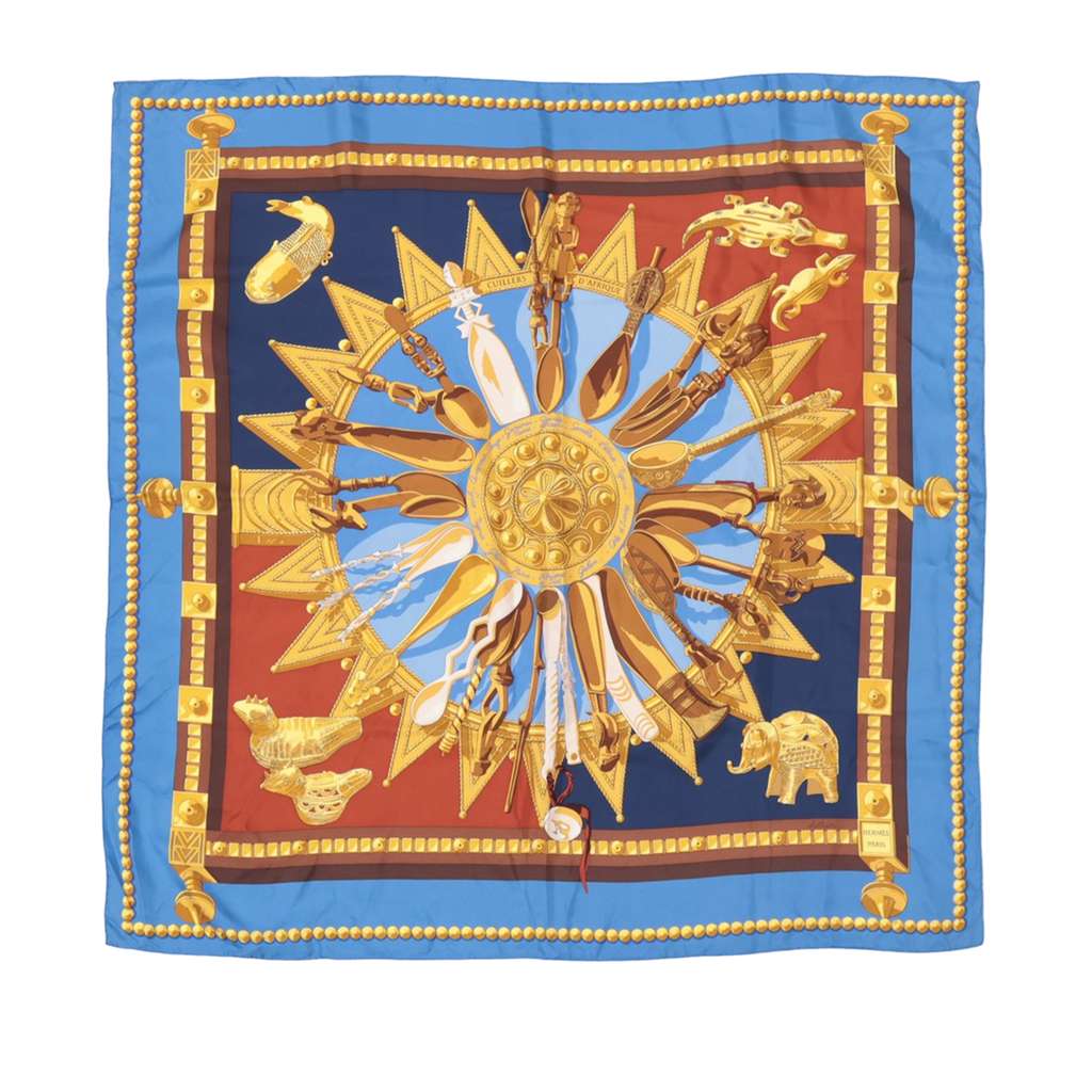 Hermès Cuillers D Afrique Silk Scarf 90 Blue Silk | Pre-Love