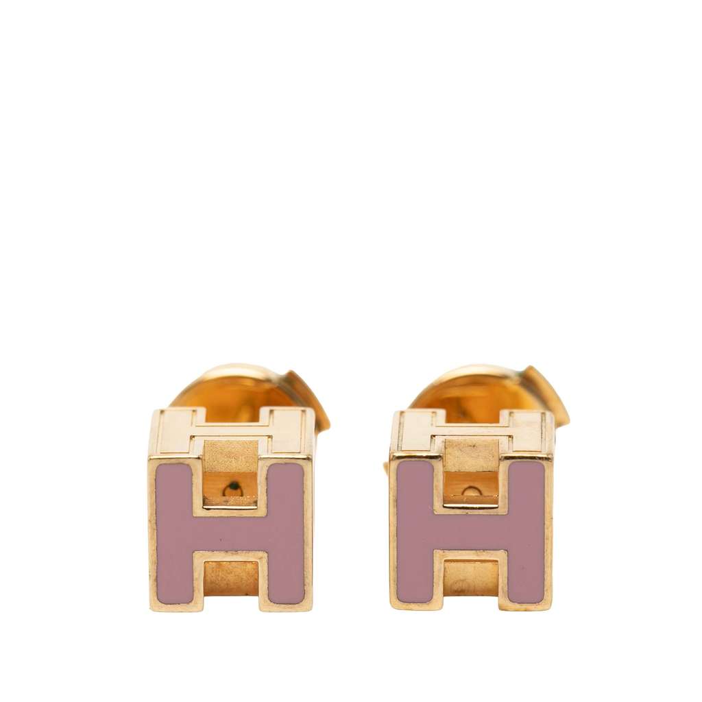 Hermès Gold Plated Enamel Cage dH Cube Push Back Earrings Pu