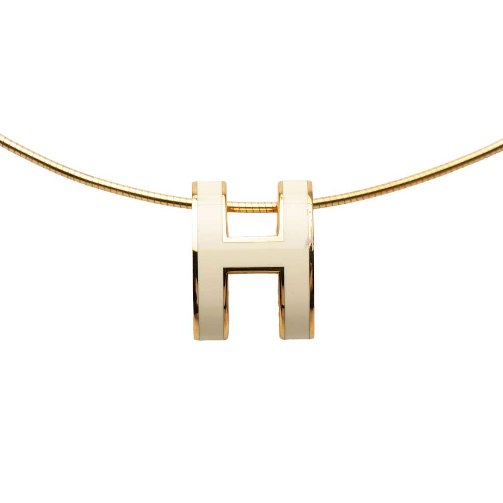 Hermès Gold Plated Enamel Pop H Pendant Necklace White