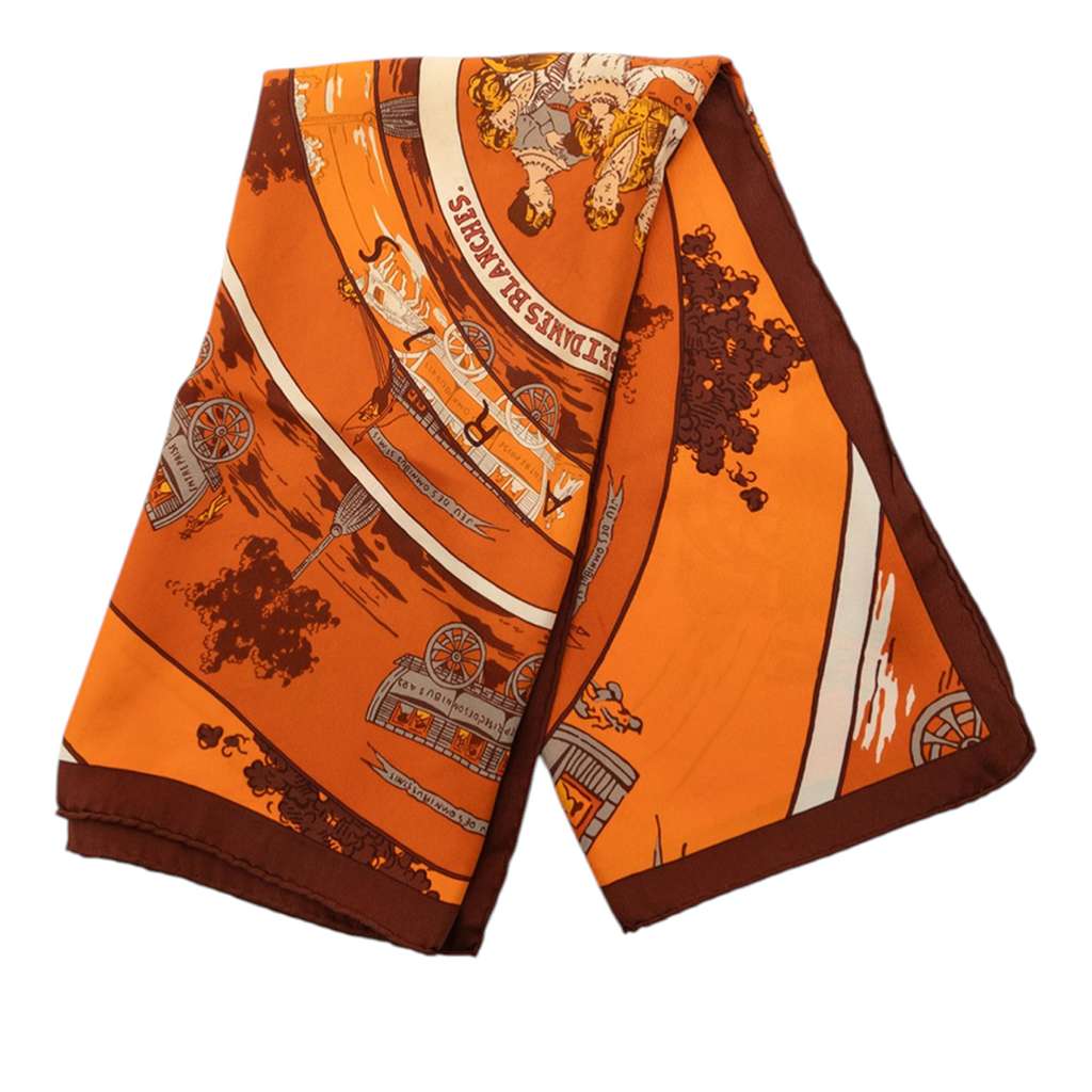 Hermès Jeu des Omnibus et Dames Blanches Silk Scarf Orange S
