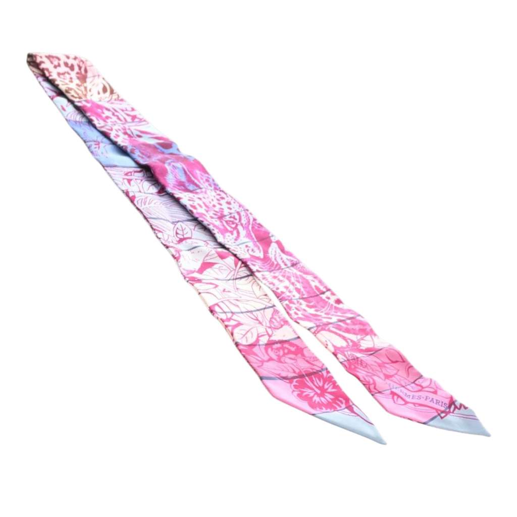 Hermès Jungle Love Rainbow Silk Twilly Scarf Pink Silk