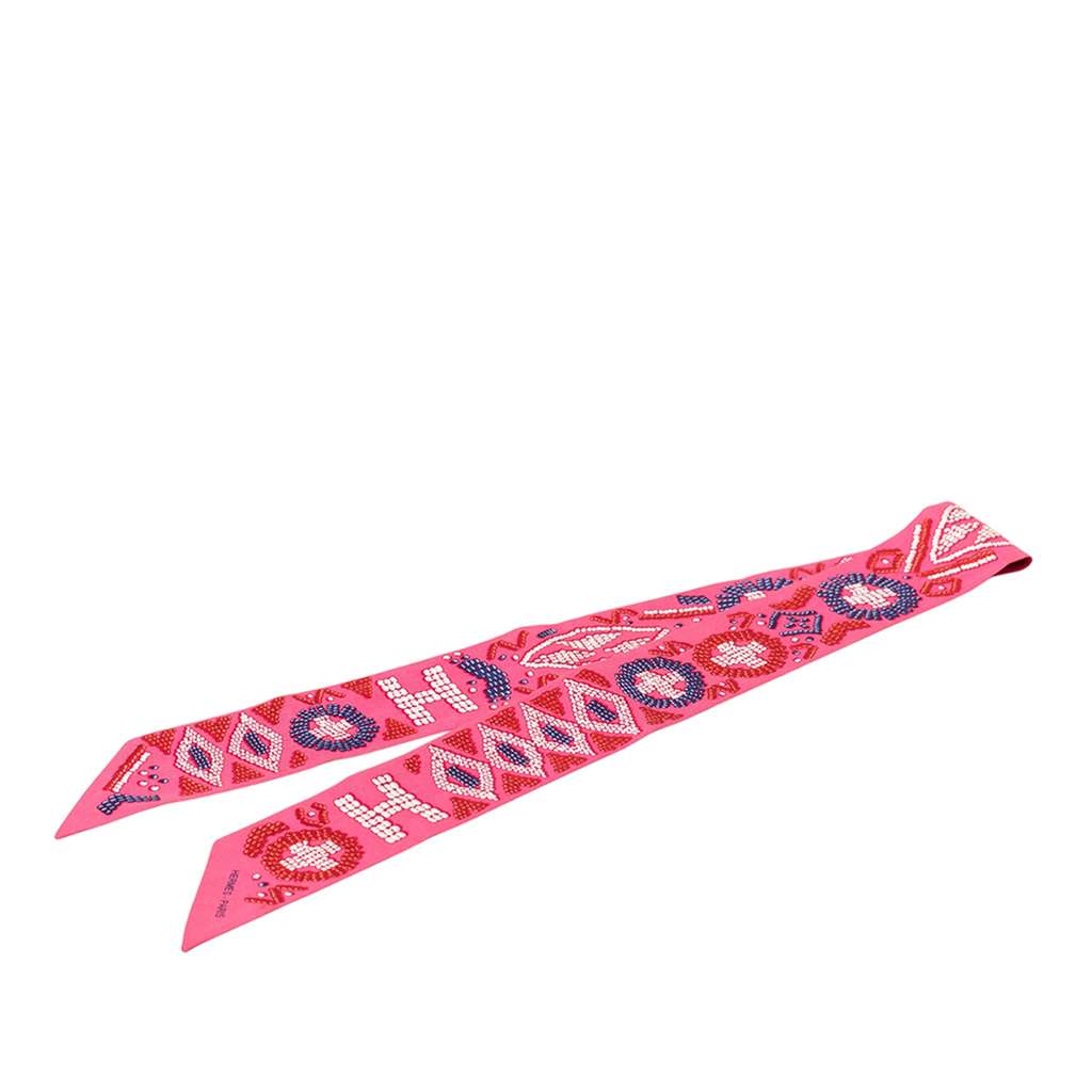 Hermès Kelly en Perles Silk Twilly Scarf Pink Silk