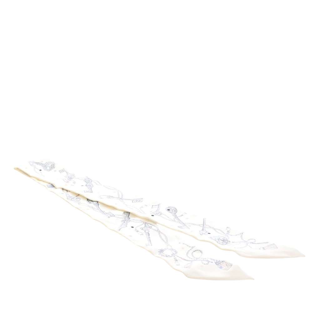 Hermès Les Cles a Pois Silk Twilly Scarf White Silk