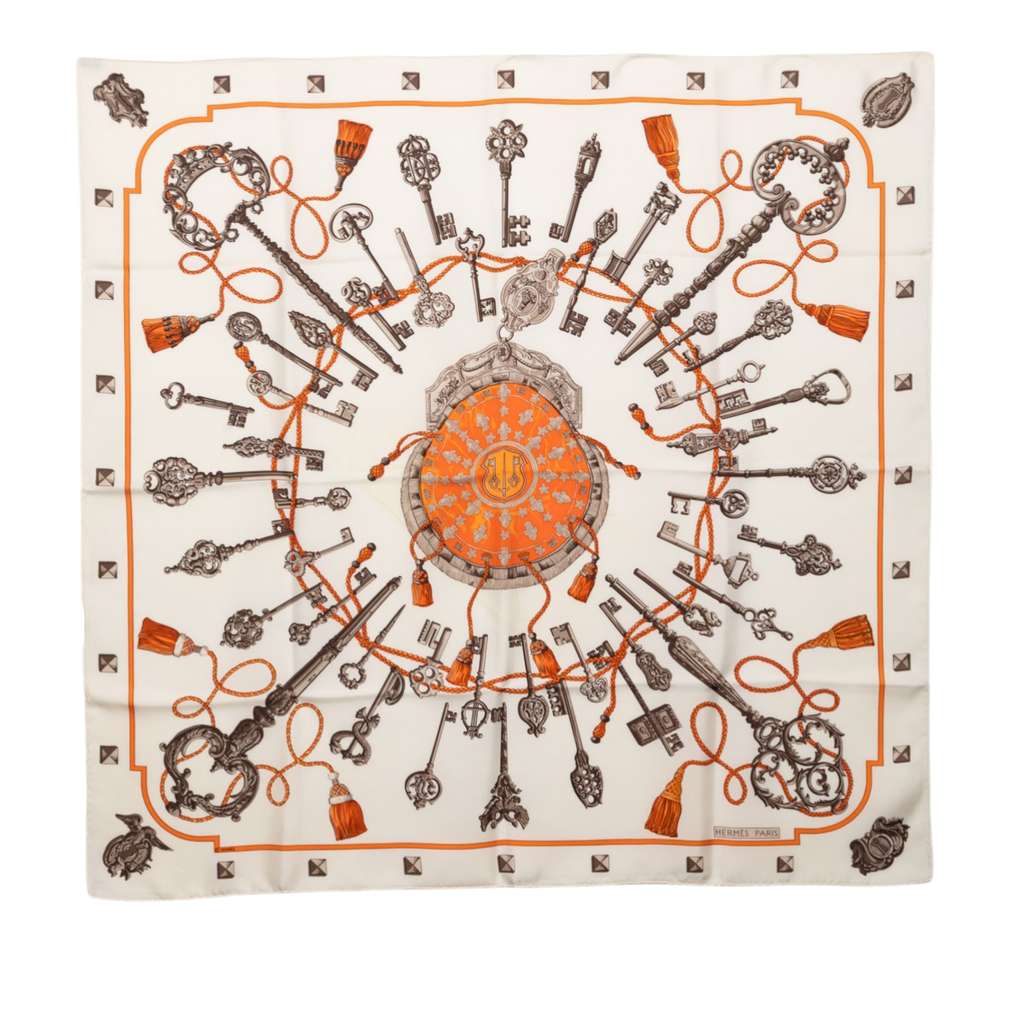 Hermès Les Cles Silk Scarf 90 White Silk | Pre-Loved Luxury