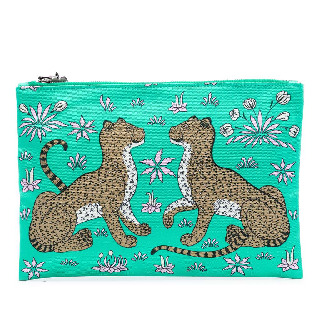 Hermès Les Leopards Silky Pocket Cosmetic Case Green Silk
