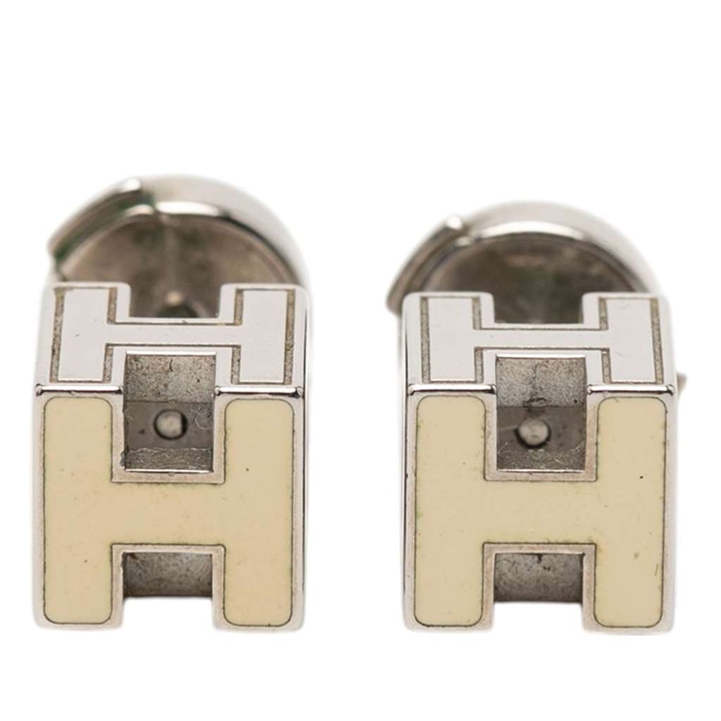 Hermès Palladium Plated Cage D H Cube Earrings Silver Metal