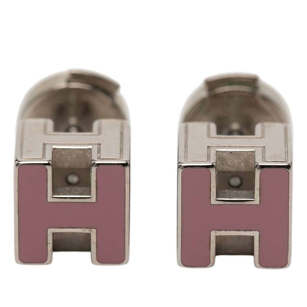 Hermès Palladium Plated Enamel Cage d H Push Back Earrings P