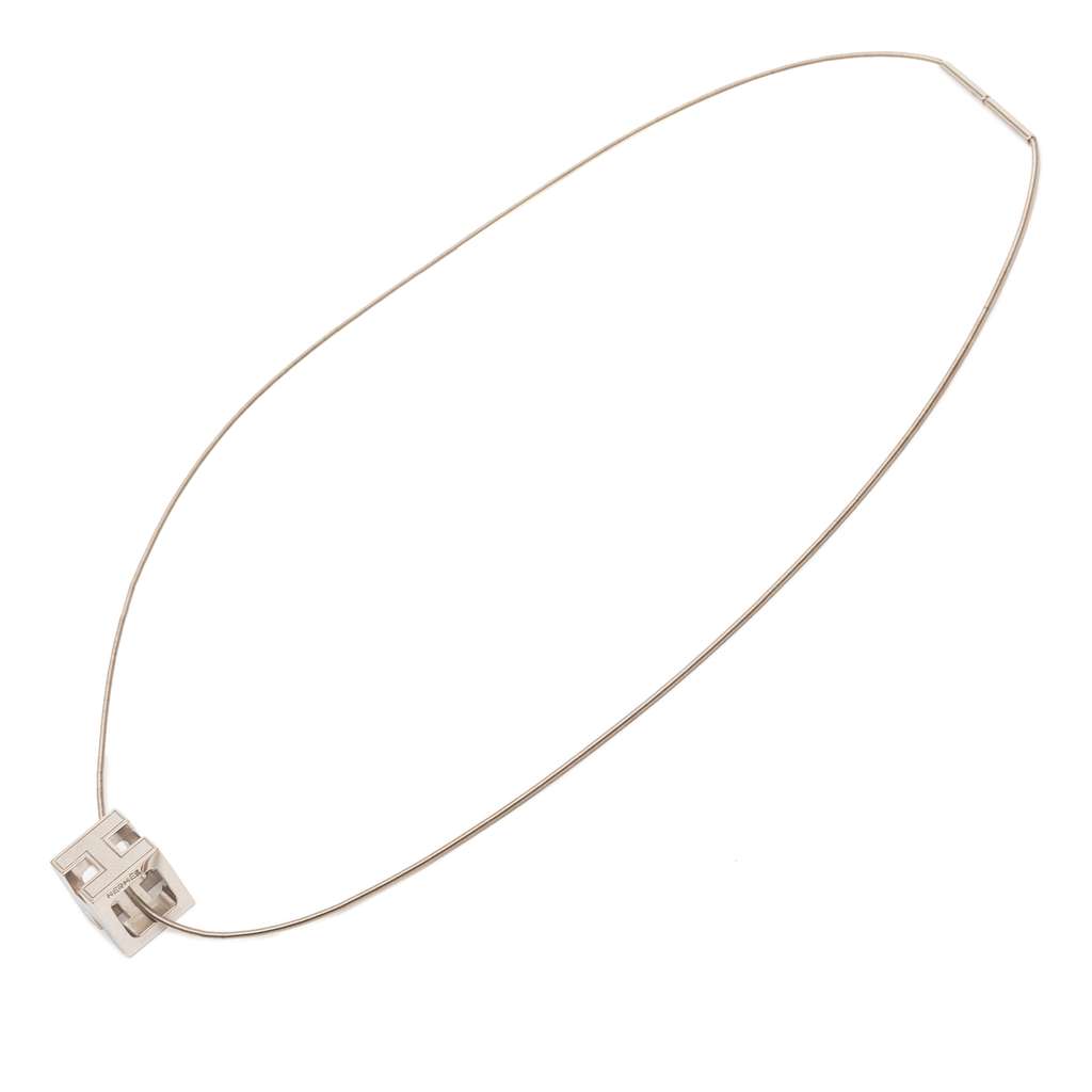 Hermès Palladium Plated Enamel Cage dH Cube Necklace Silver