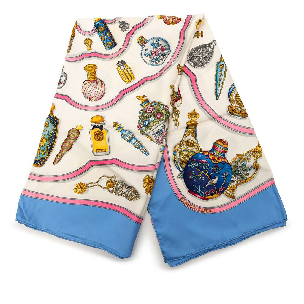 Hermès Qu Importe Le Flacon Silk Scarf 90 White Silk