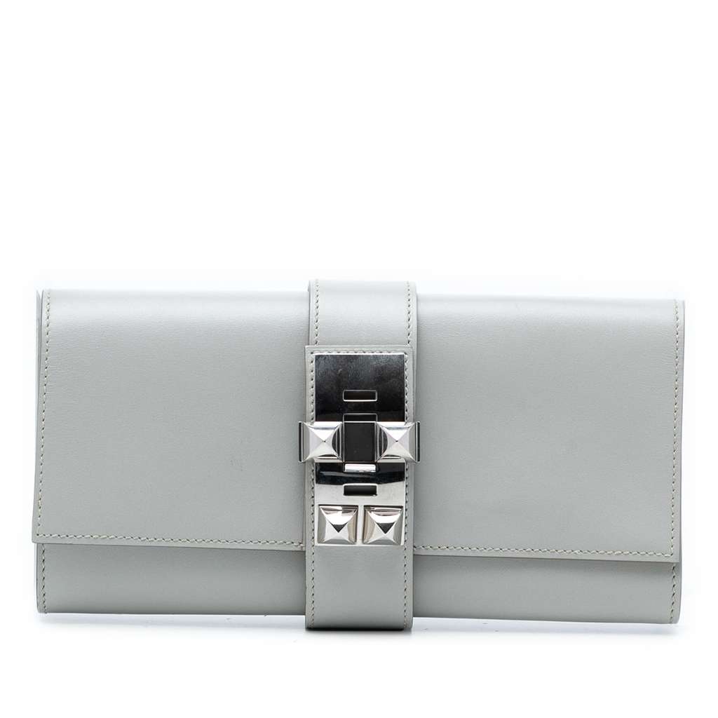 Hermès Tadelakt Medor Clutch 23 Grey Small Leather