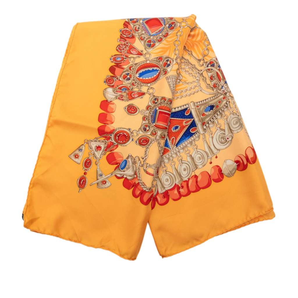 Hermès Terres Precieuses Silk Scarf 90 Yellow Silk