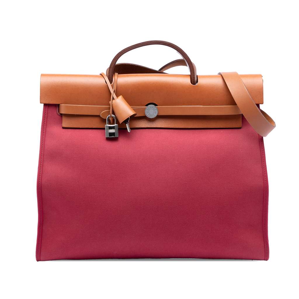 Hermès Toile Herbag Zip 39 Red X-Large Canvas | Pre-Loved Lu