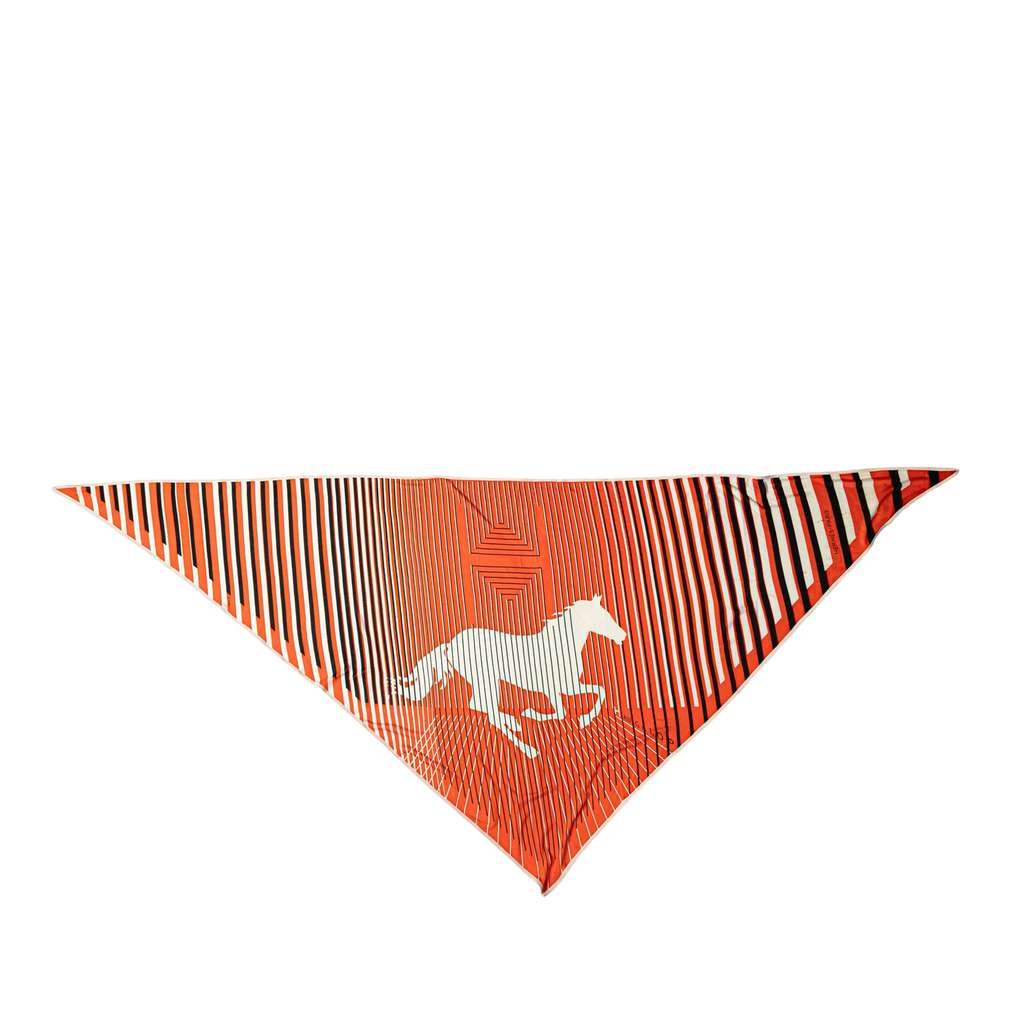 Hermès Triangular H Au Galop Silk Scarf Orange Silk