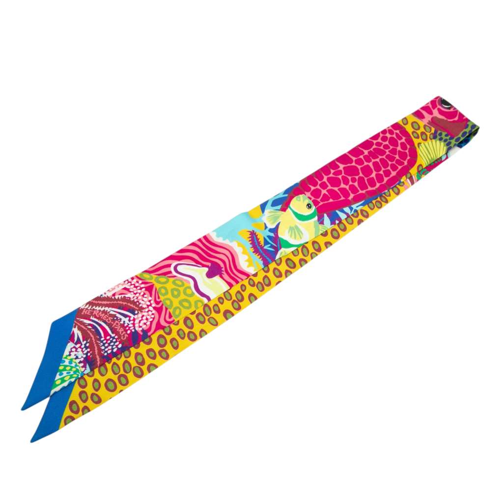 Hermès Under the Waves Twilly Silk Scarf Yellow Silk