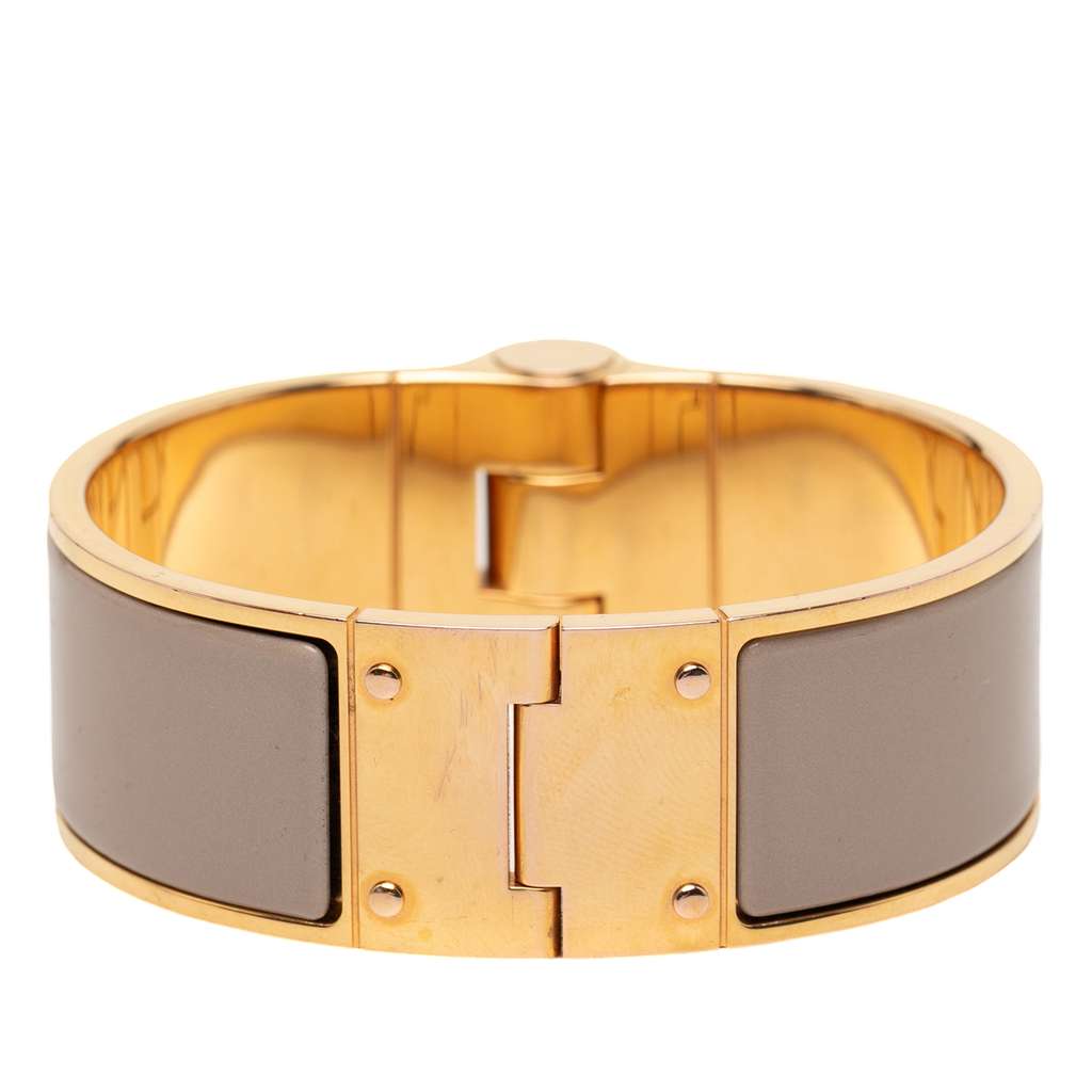 Hermès Wide Enamel Charniere Hinged Bracelet Brown
