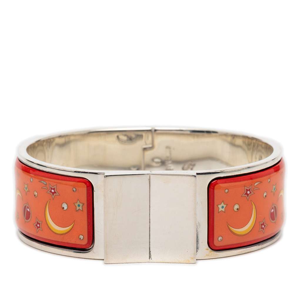 Hermès Wide Enamel Moon and Stars Loquet Bangle Orange