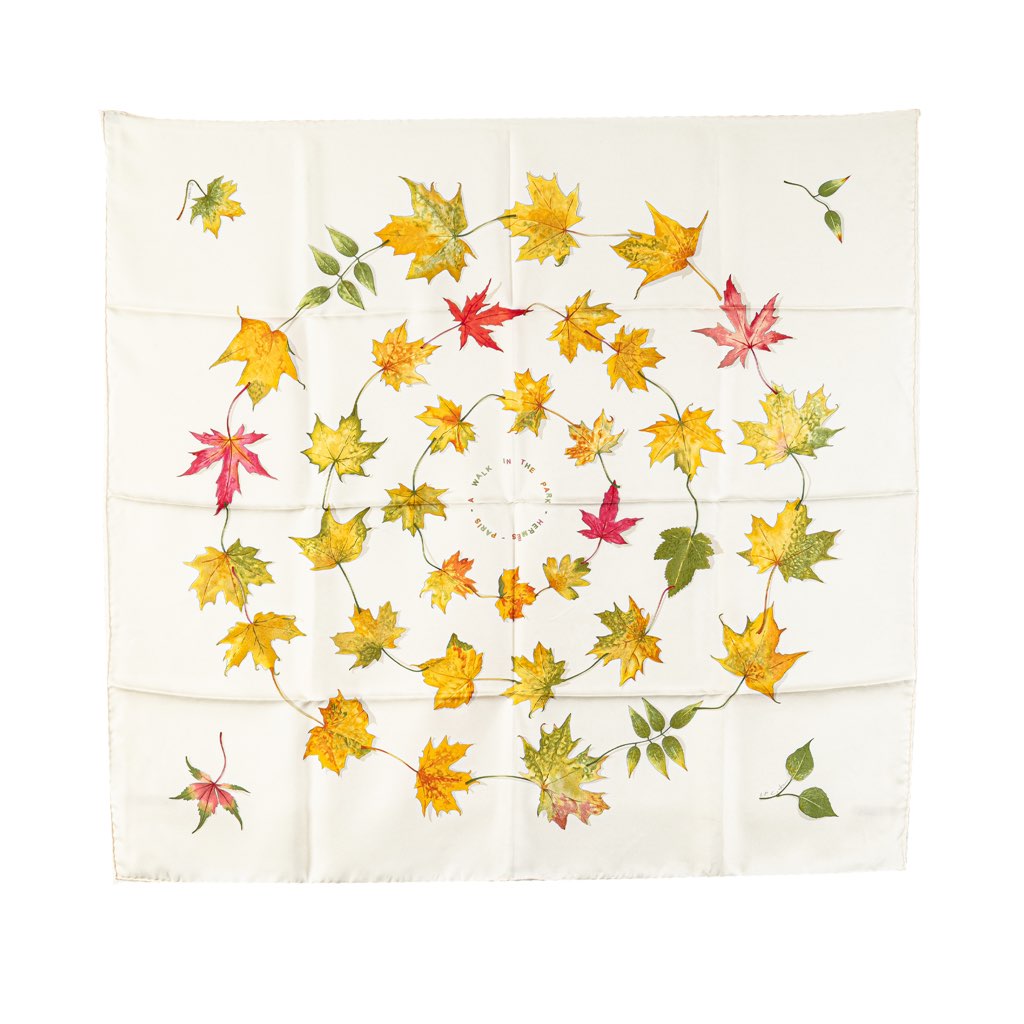 The A Walk In The Park scarf features a print on 100% silk.