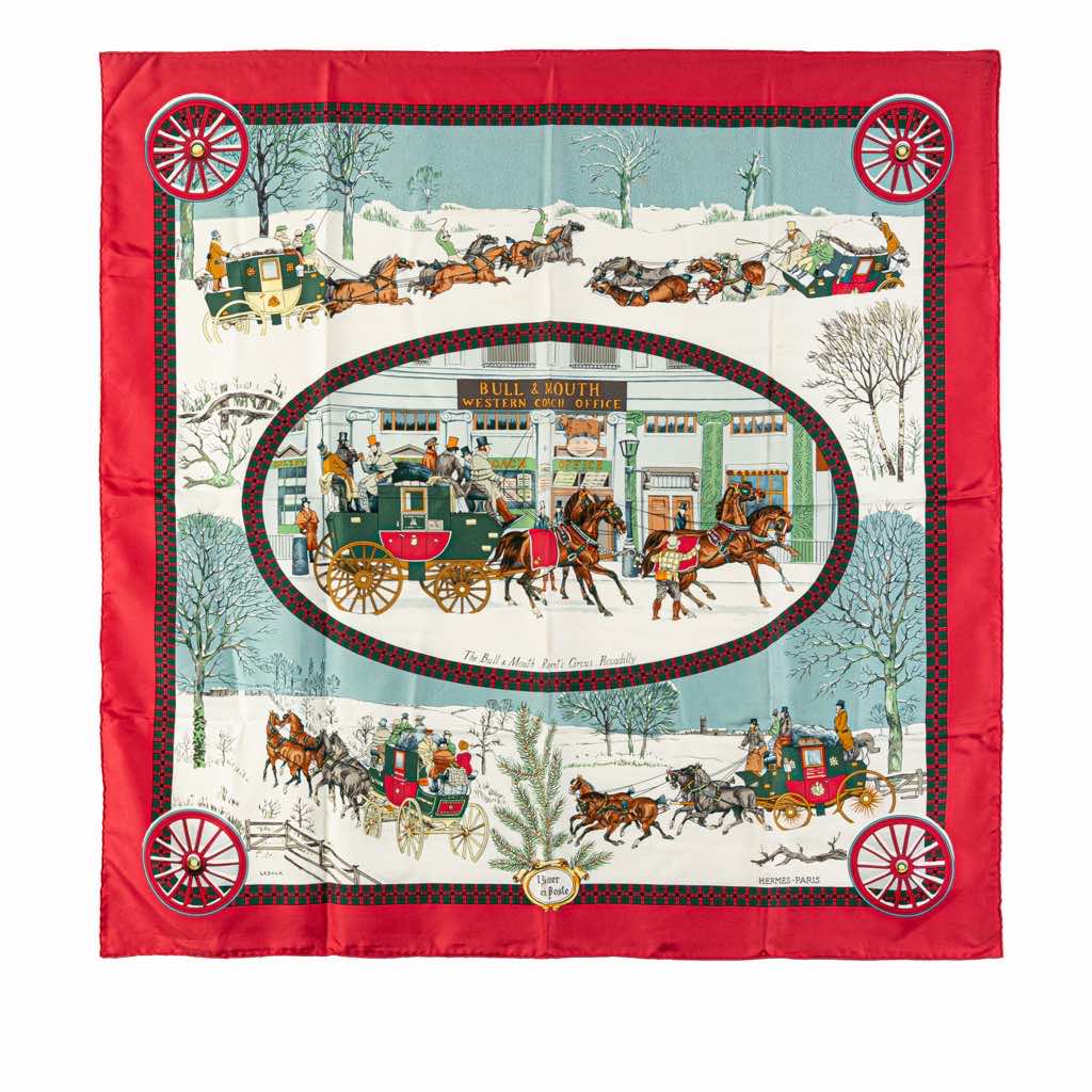 The Bull & Mouth Western Coach Office scarf features a print on 100% silk.