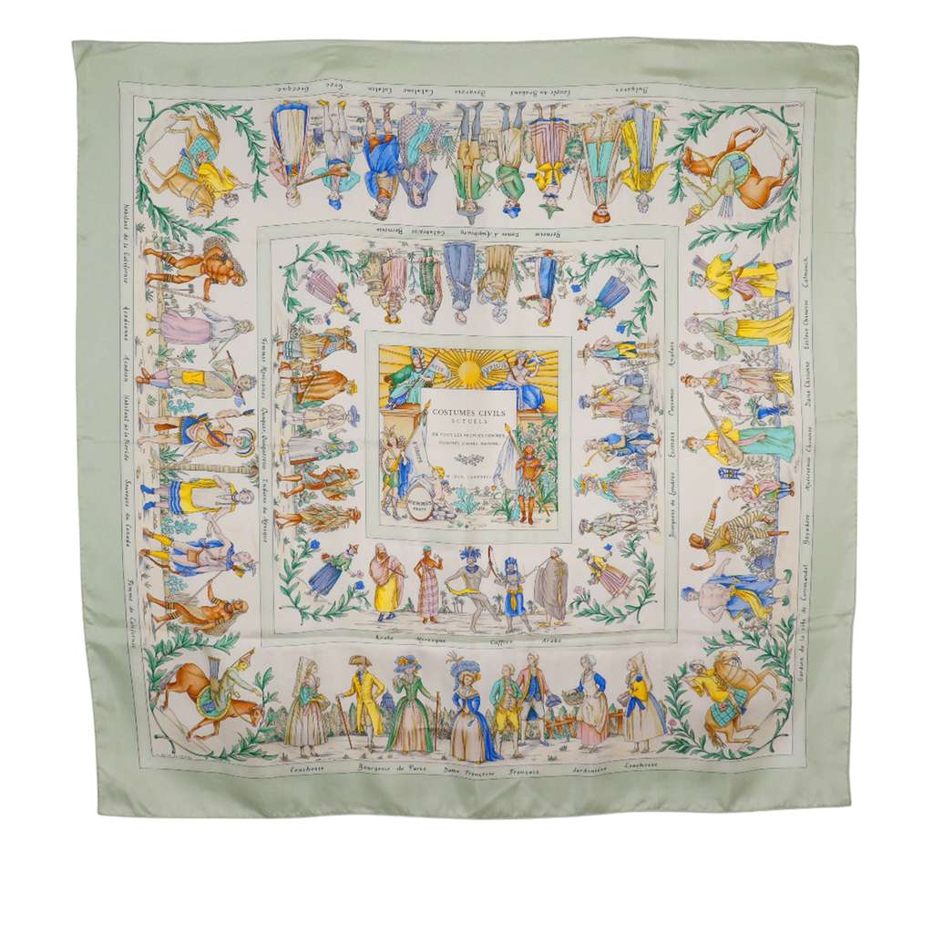 This scarf features the Costumes Civils Actuels print on 100% silk.