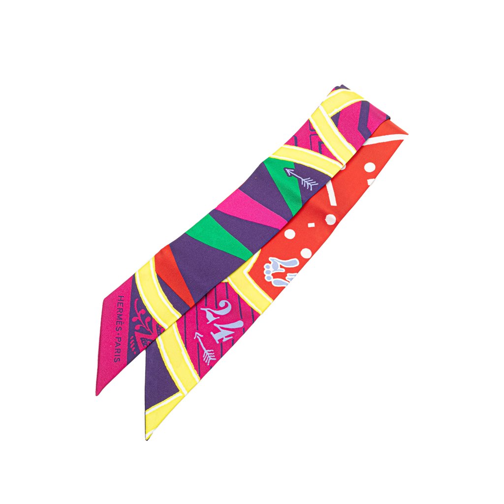 This twilly scarf features a Jeu de Soie Uniforme print on 100% silk.