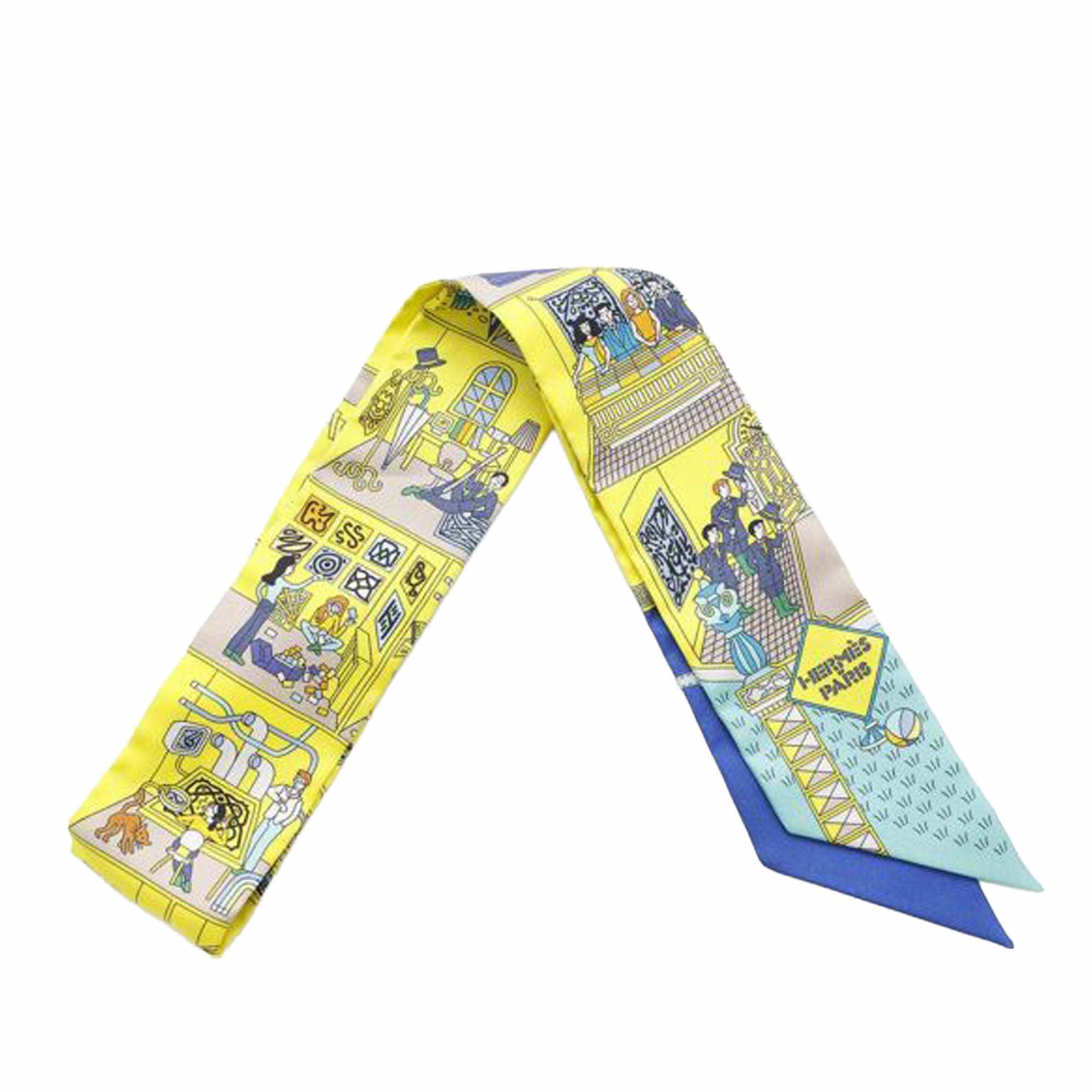 This twilly scarf features the La Maison des Carres print on 100% silk.