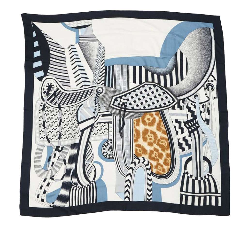 This scarf features a La Selle Imaginaire print in 30% silk and 70% cashmere.
