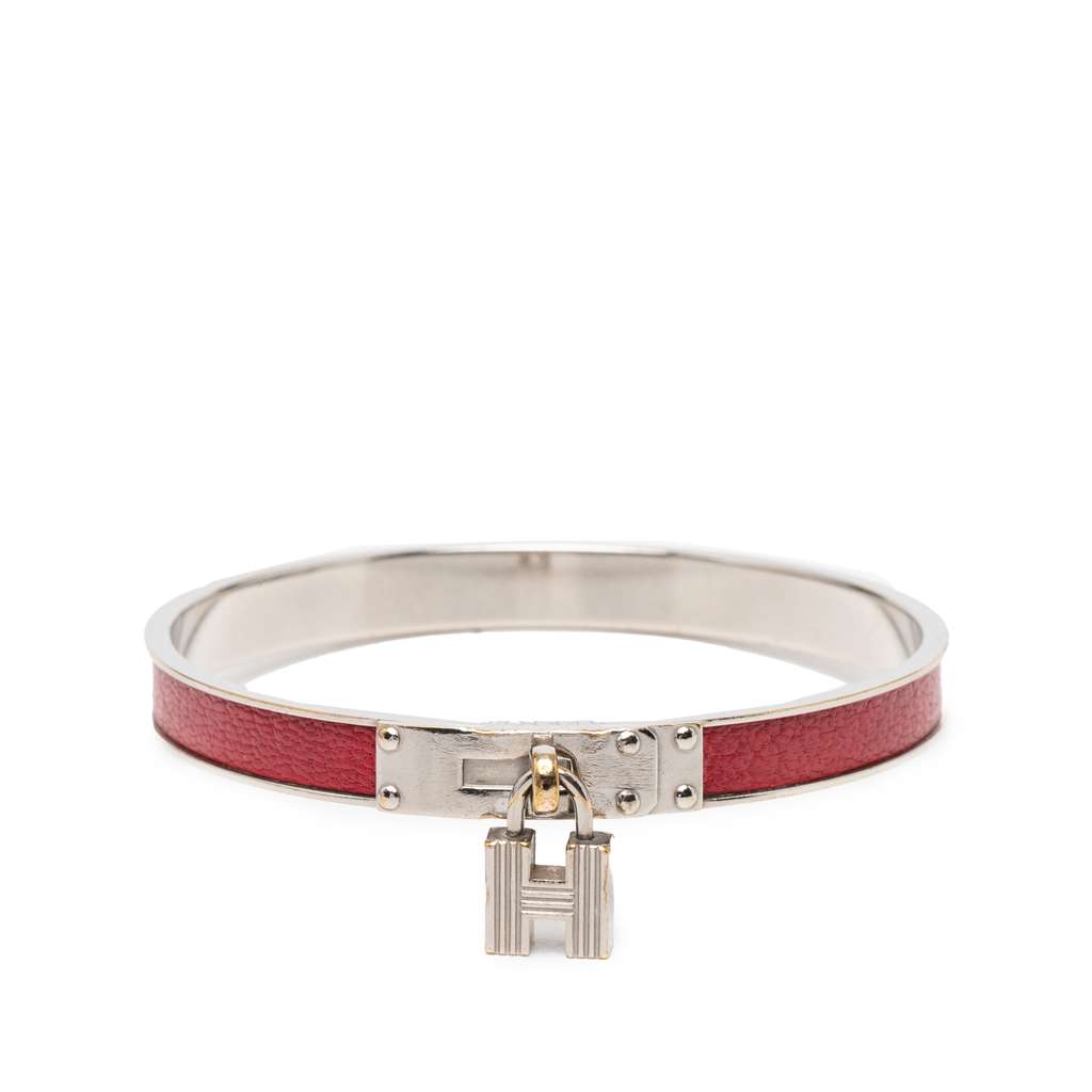 The Kelly bracelet features a palladium-plated metal and leather body.
