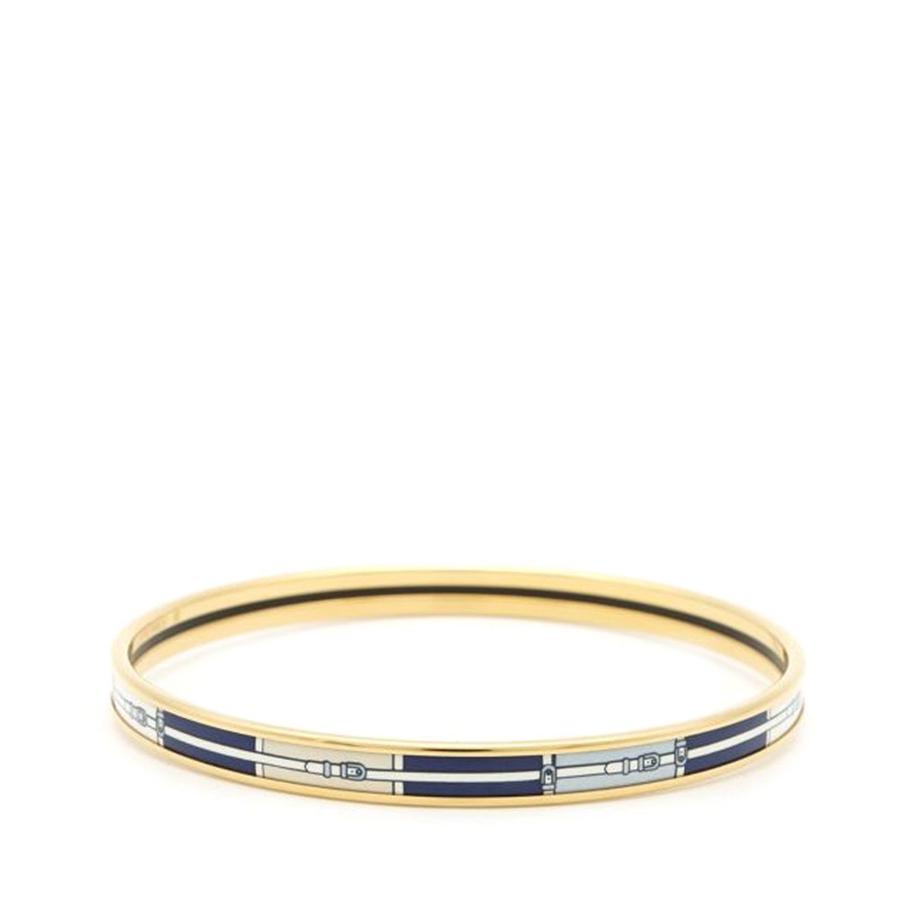 This bracelet features an printed enamel body, and a gold-tone metal hardware.