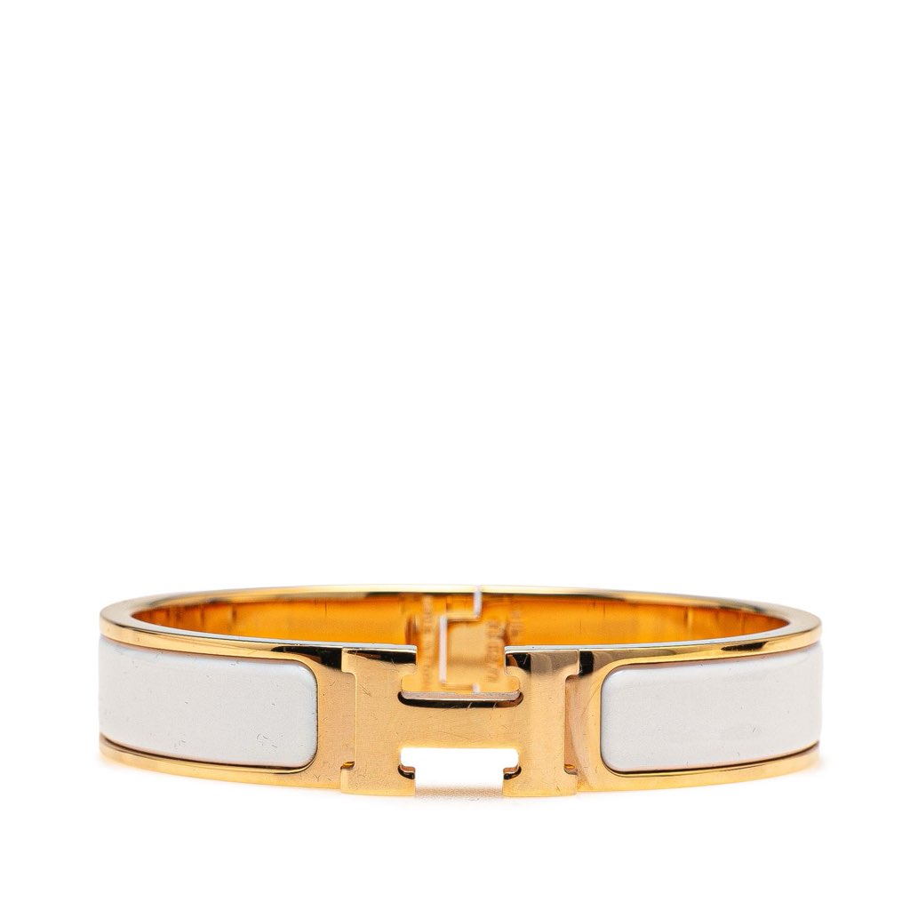 The Clic H Bracelet features an enamel and gold-plated metal body and a metal clasp closure.
