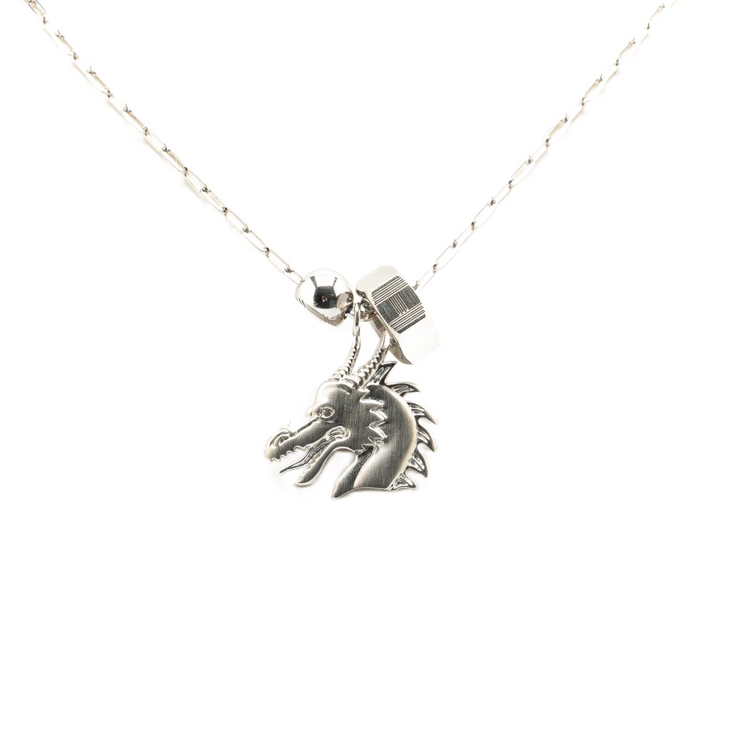 This necklace features a palladium plated chain, a dragon pendant, and a lobster claw clasp closure.