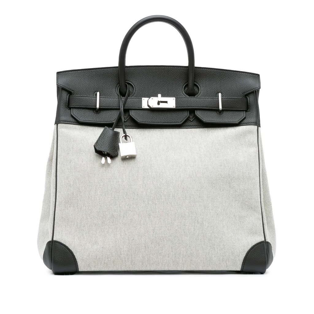 The HAC Birkin 40 features a canvas body in Ecru color with Evercolor leather trim, rolled leather top handles, and a front flap with a turn-lock closure.