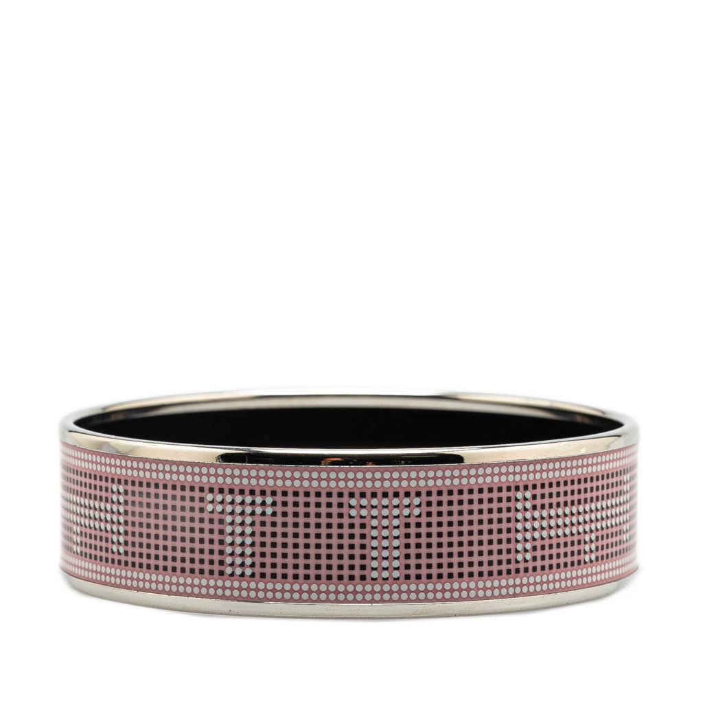 This bracelet features a print on an enamel and palladium-plated body.