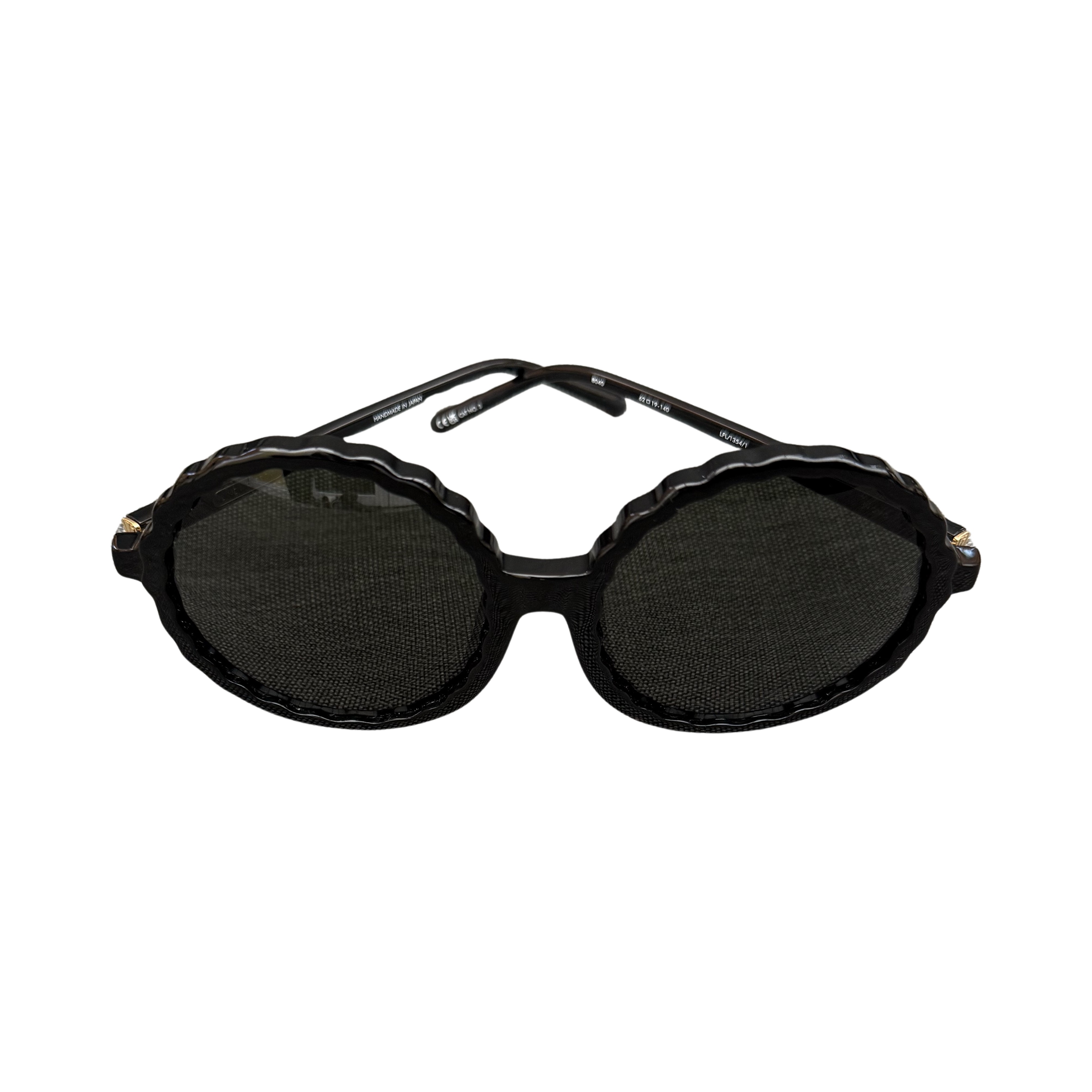 Nova sunglassesRound, scalloped-edged framesBlack acetateGrey tinted lensesSlim temples100% UV protectionMade in JapanCOMPOSITION & SIZEAcetateArm: 15.4cm, Bridge: 1.9cm, Lens: 6.2cm