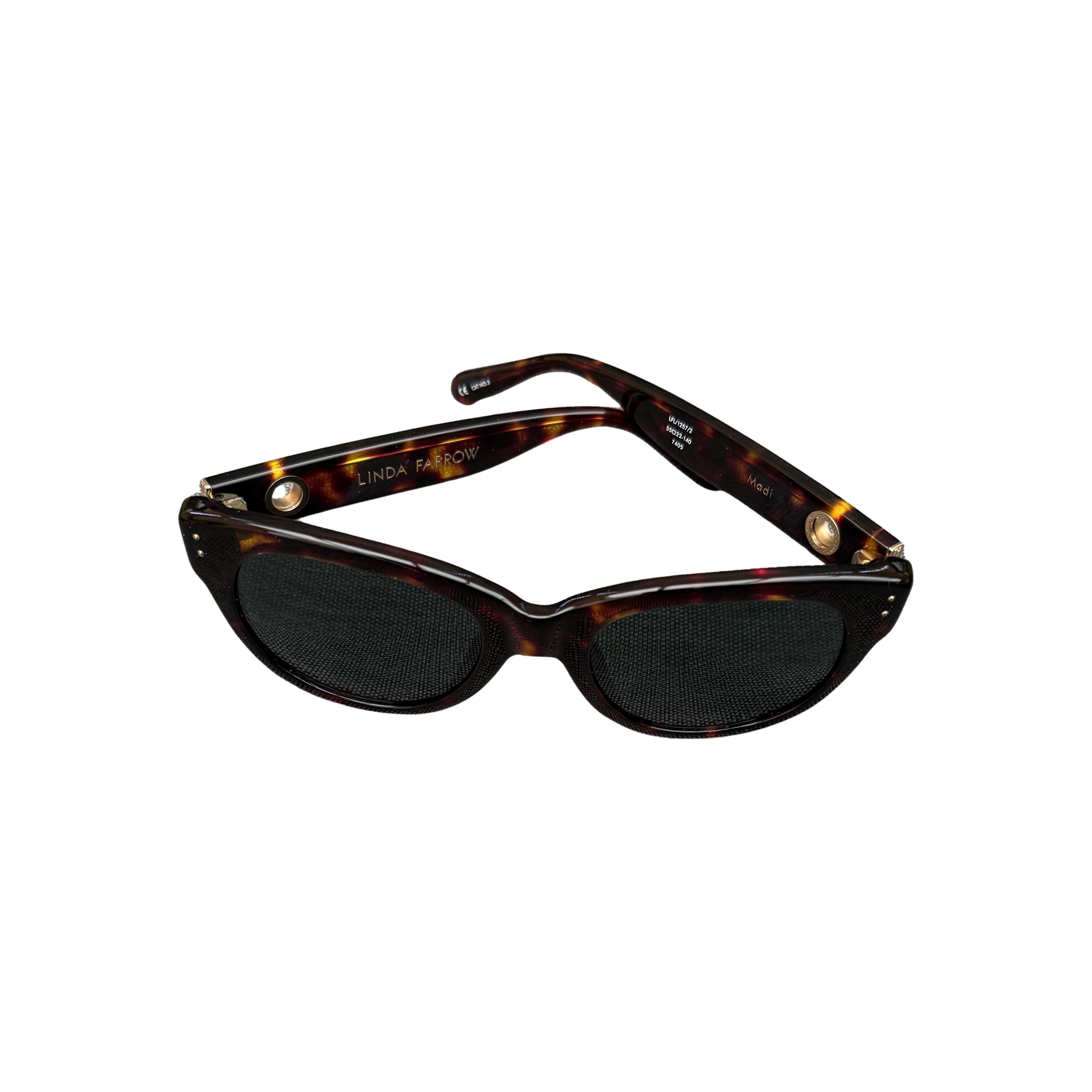 Glasses come with a Linda Farrow hard case. Linda Farrowtortoiseshell-effect cat-eye sunglassesbrown acetate tortoiseshell effect cat-eye frame tinted lenses straight arms curved tips These glasses come with a protective case.CompositionAcetate 100%Product measurementsArm length14 cmBridge width2.2 cmLens diameter5.5 cmTotal width14.9 cm