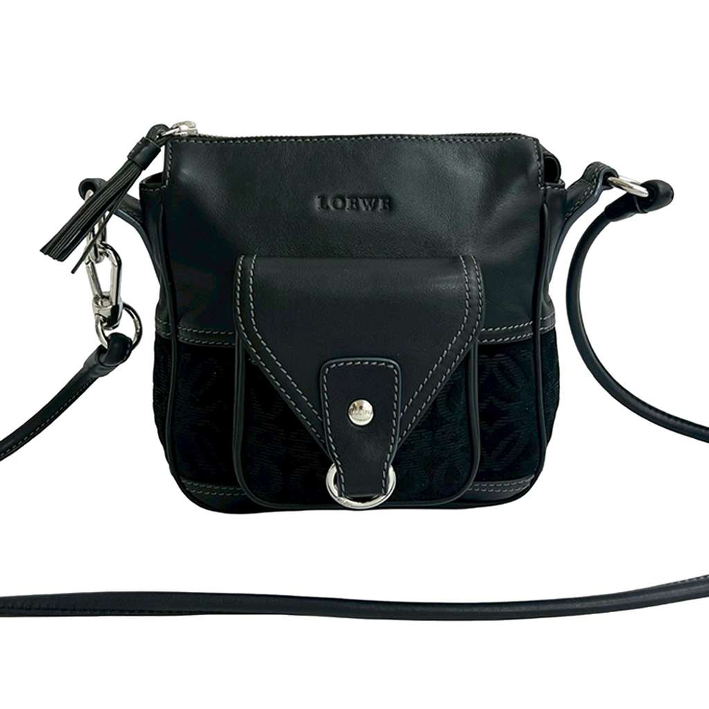 Loewe Anagram Leather and Suede Crossbody Black Mini Leather