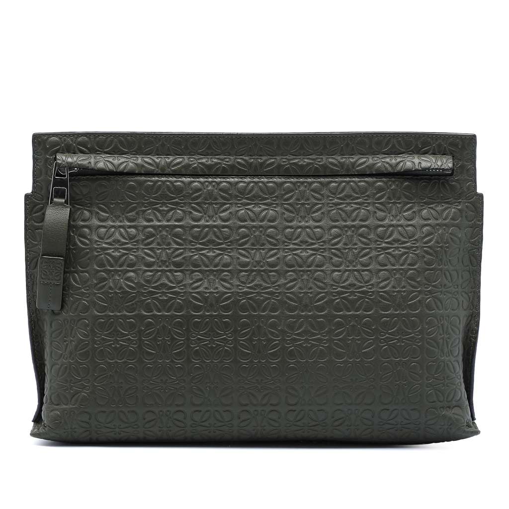 Loewe Embossed Leather Anagram Repeat T Clutch Green Large L