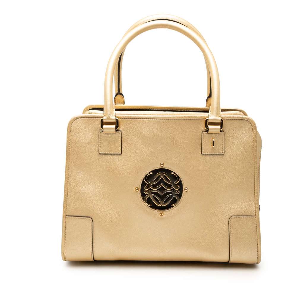 The Amazona features a goatskin leather body, rolled leather handles, a top zip closure, open compartments, and interior zip and slip pockets.
