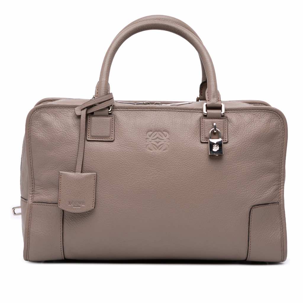 The Amazona 36 features a goatskin leather body, rolled leather handles, a top zip closure, and interior zip and slip pockets.