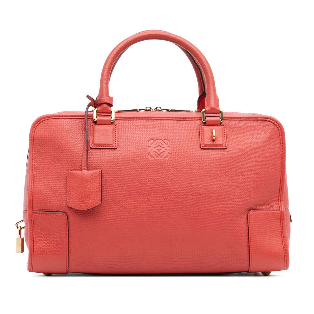 The Amazona features a leather body, rolled leather handles, a top zip closure, and interior zip and slip pockets.