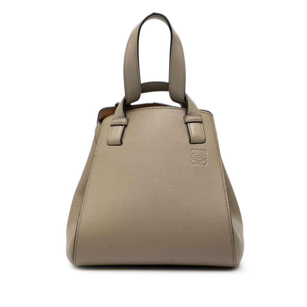 The Hammock Nugget features a leather body, flat leather handles, an open top with lobster claw closure, and an interior slip pocket.