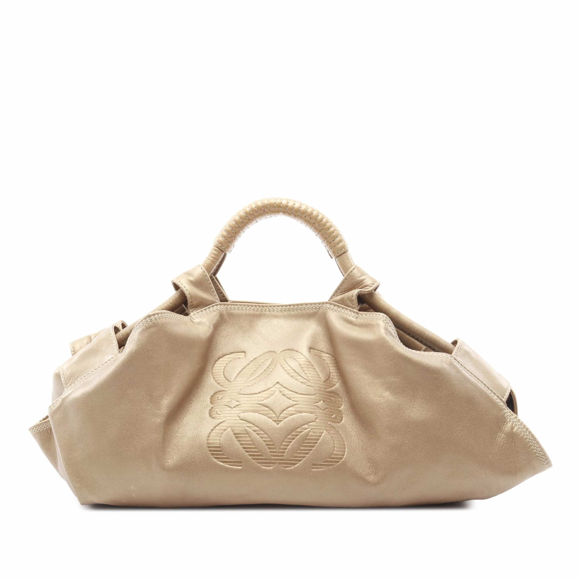 The Aire features a metallic nappa leather body, rolled leather handles, an open top with magnetic snap closure, and interior zip and slip pockets.