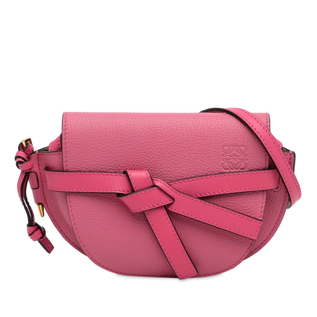 The Gate crossbody bag features a leather body, a flat leather strap, a flap closure, and interior slip pockets.