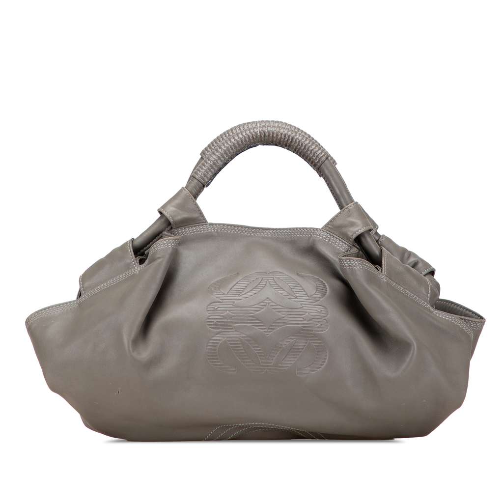 The Nappa Aire features a leather body, rolled leather handles, an open top with magnetic snap closure, and an interior zip pocket.