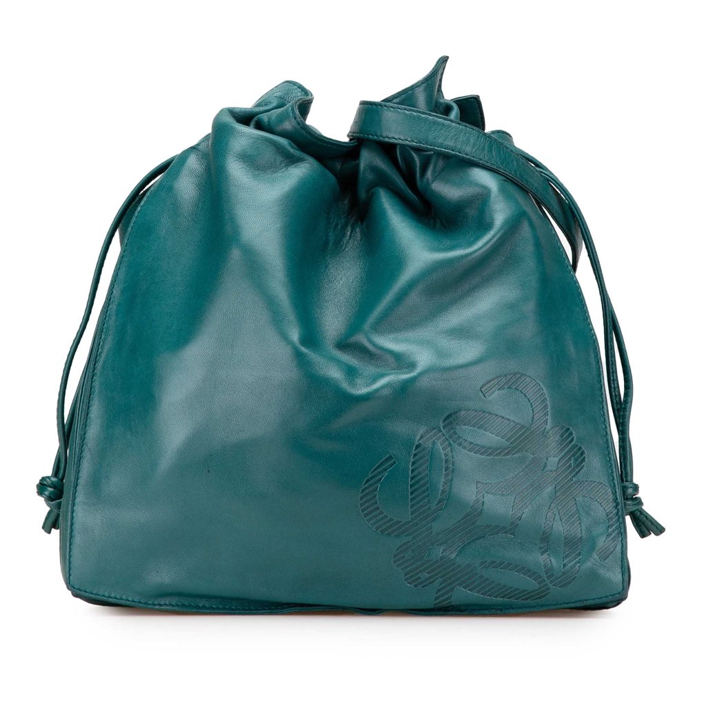 The Flamenco shoulder bag features a leather body, flat leather straps, an open top with magnetic snap and drawstring closure, and interior zip and slip pockets.