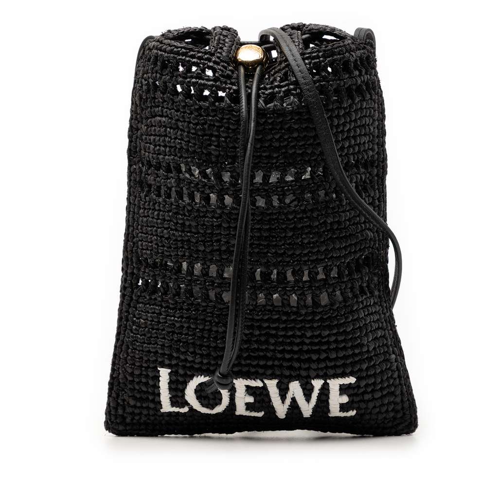 Loewe Paula Ibiza Raffia Drawstring Pocket Crossbody Black M