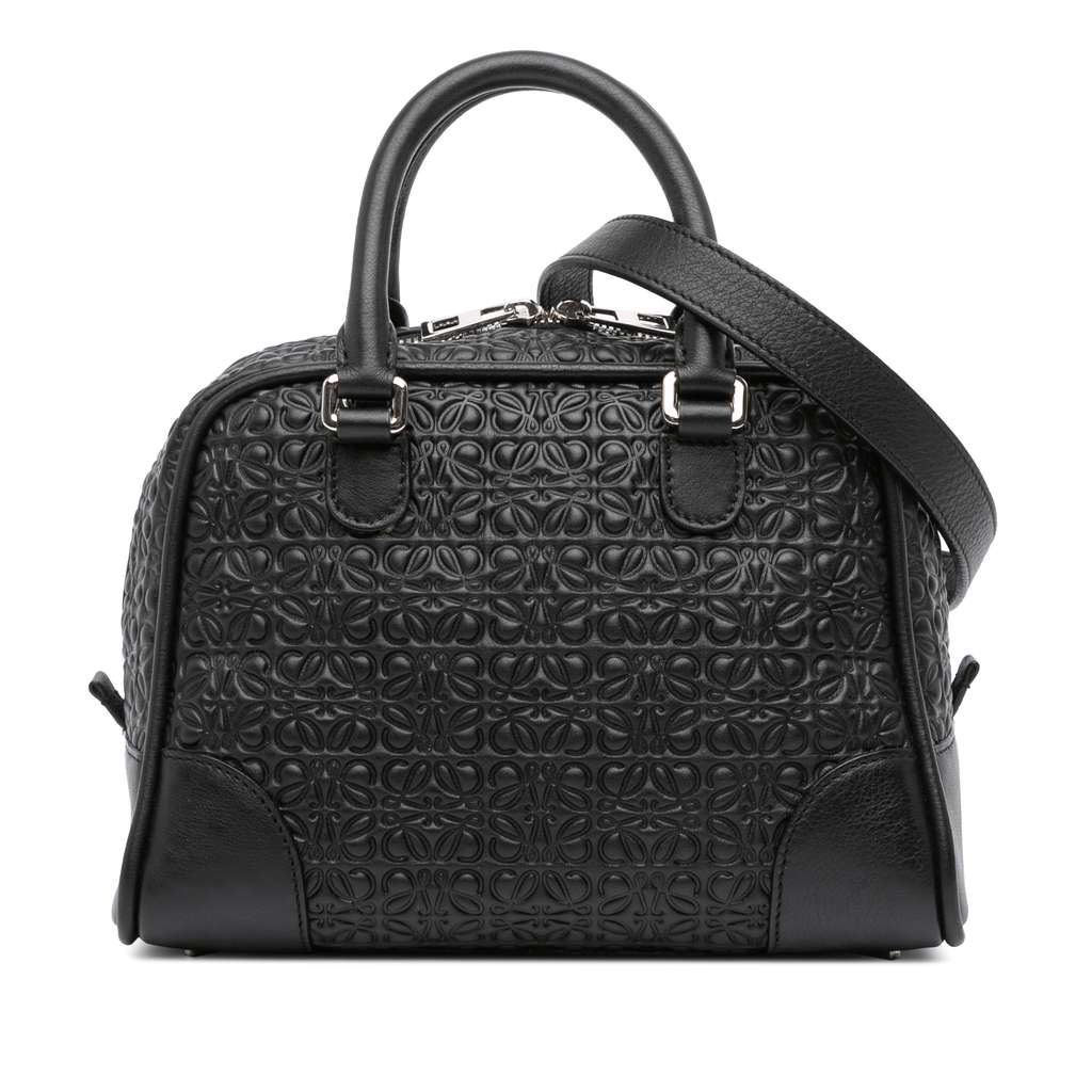 This satchel features an embossed leather body, rolled leather handles, a detachable flat leather strap, a top zip closure, and an interior zip closure.