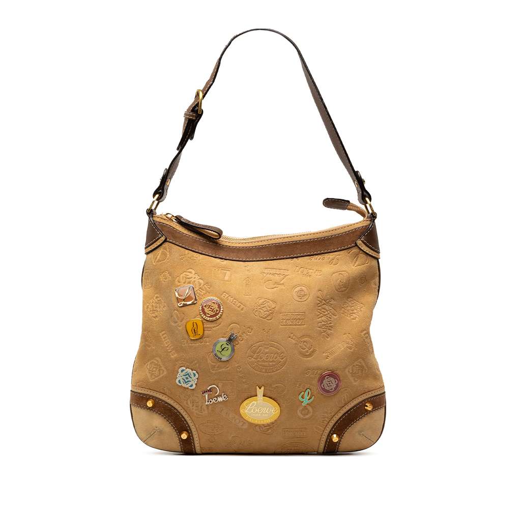 Loewe Suede Fiel A La Piel Shoulder Bag Brown Large Leather
