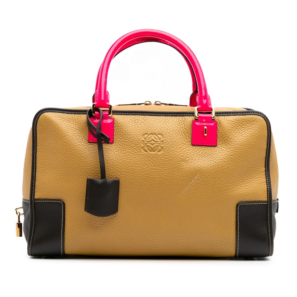 The Amazona 36 features a leather body, rolled leather handles, a top zip closure, and interior zip and flap pockets.