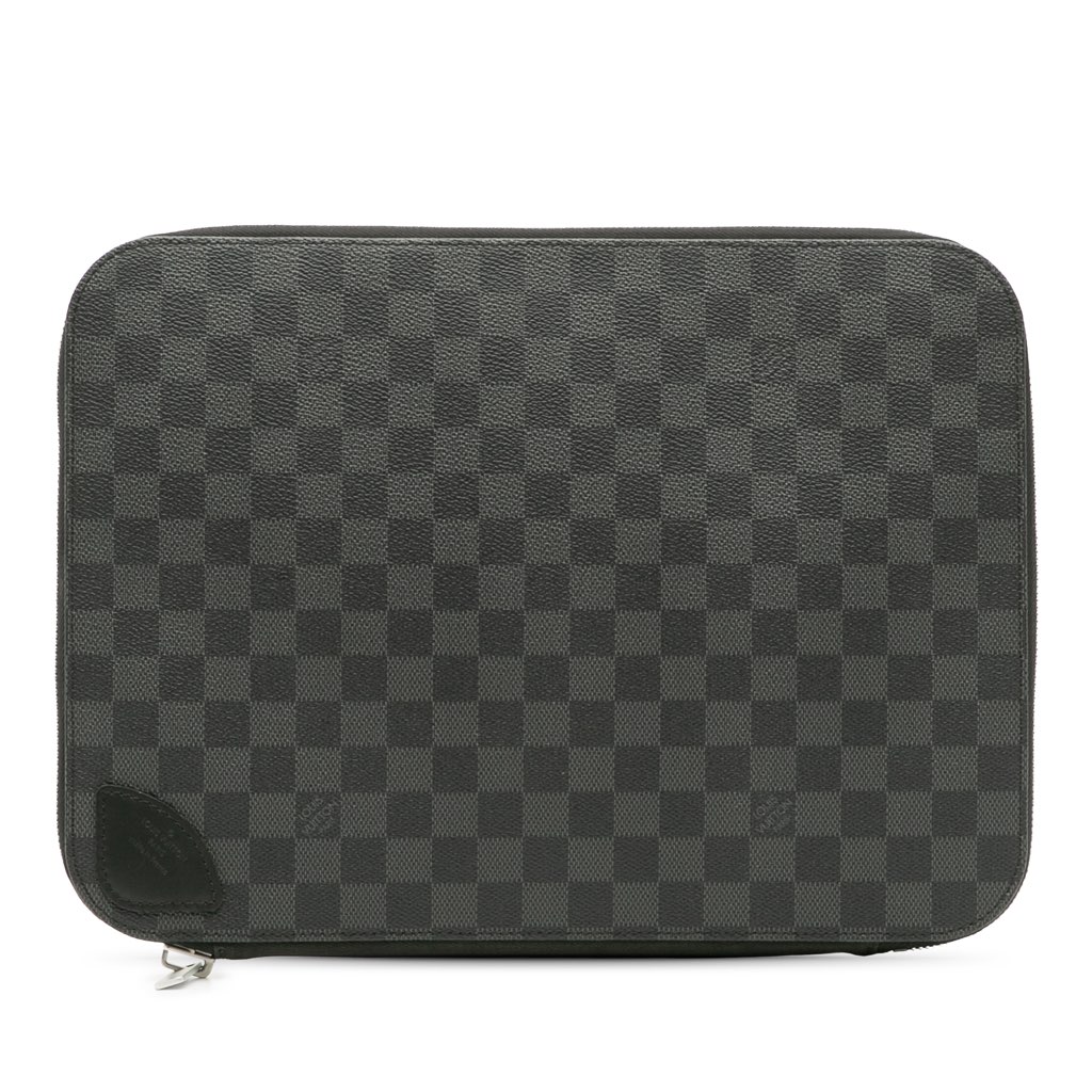 This laptop sleeve features a damier graphite canvas body, a zip-around closure, and an interior slip pocket.